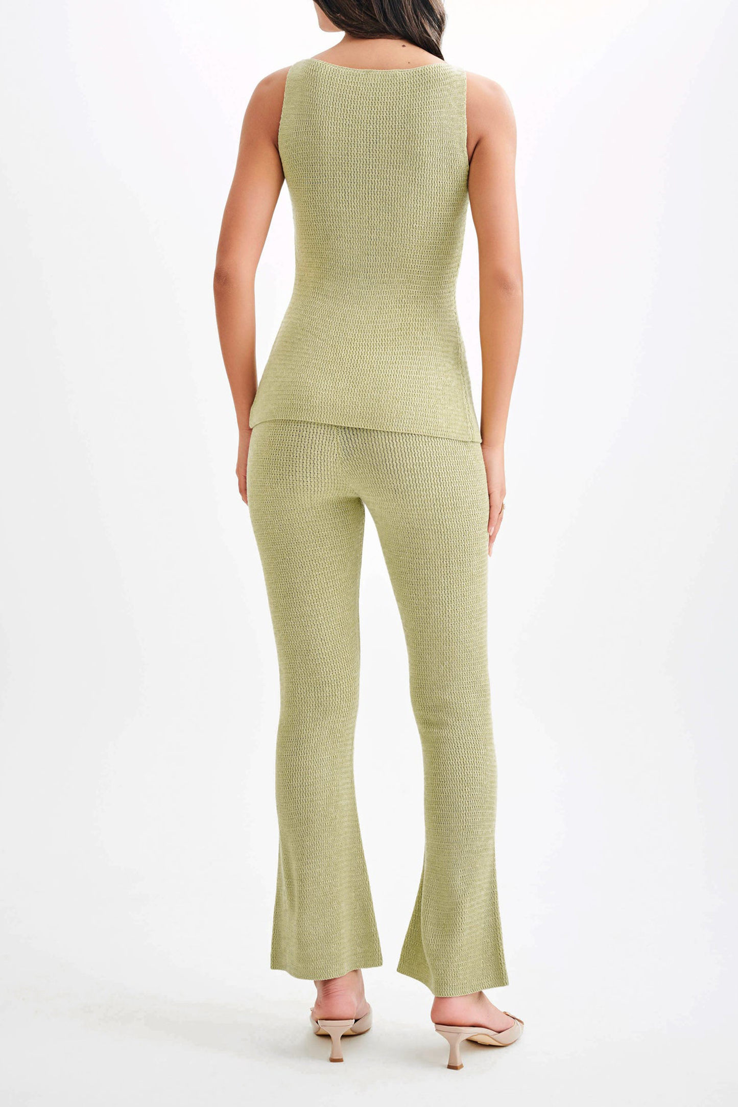 The Straight Leg Knit Pant offers a harmonious blend of comfort and contemporary style. These high-waisted pants feature a straight-leg design with an elastic waist for a flattering fit and effortless wearability. Crafted from unlined knitted fabric, they provide breathable comfort while maintaining a sleek appearance. Pair seamlessly with the Knit Tank Top With Split for a coordinated ensemble that transitions effortlessly from casual daytime outings to relaxed evening settings. Versatile and elegantly simple, the pants are a wardrobe staple for those seeking comfort and style without compromise.