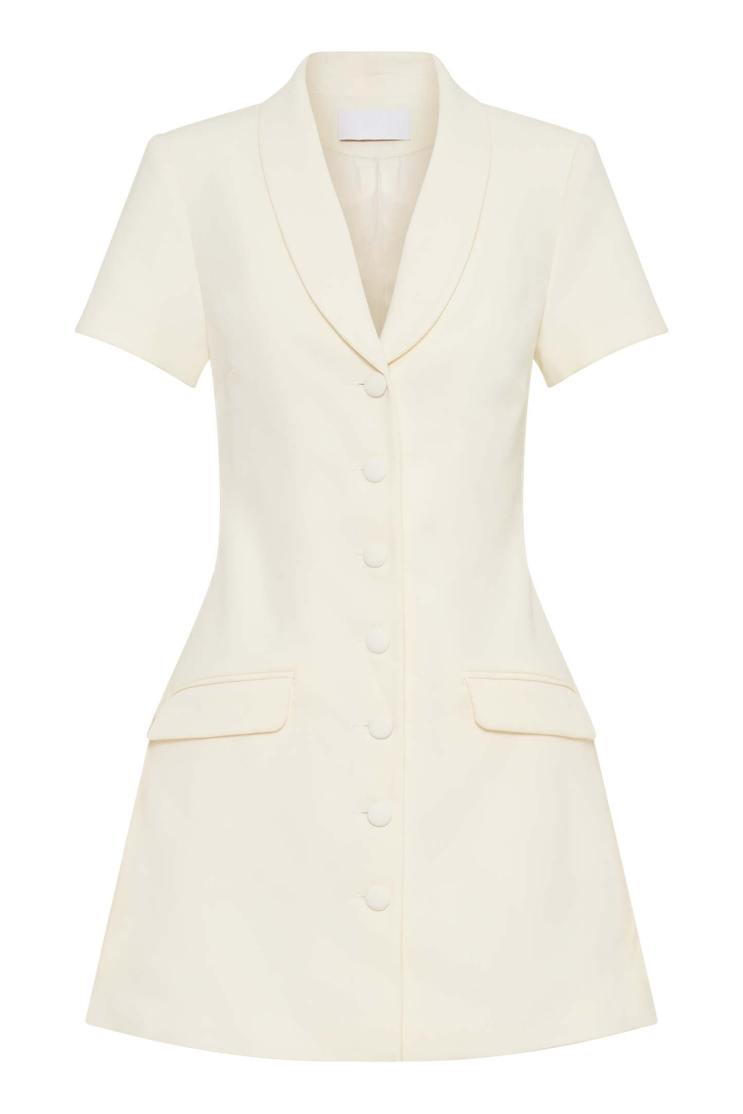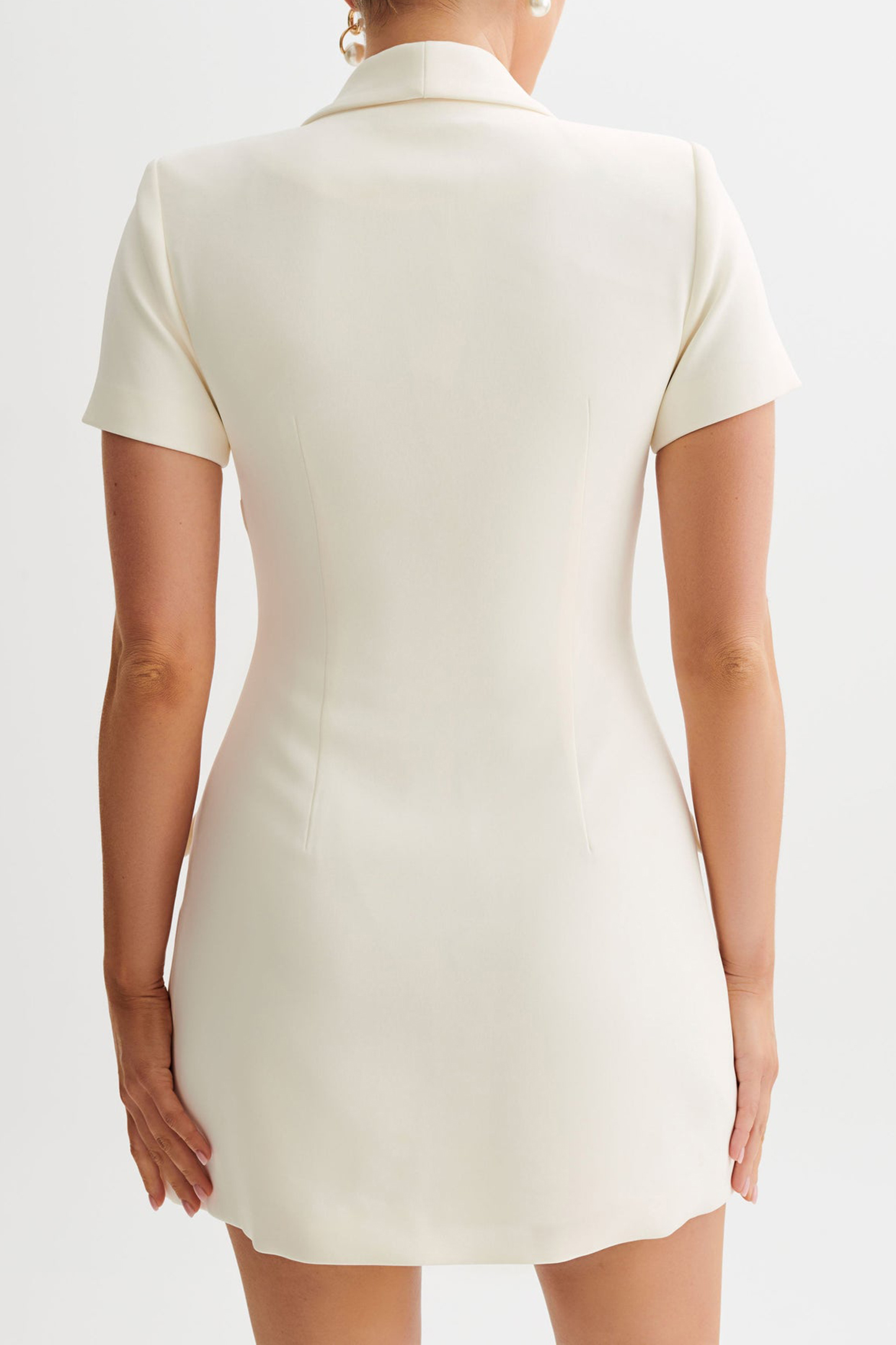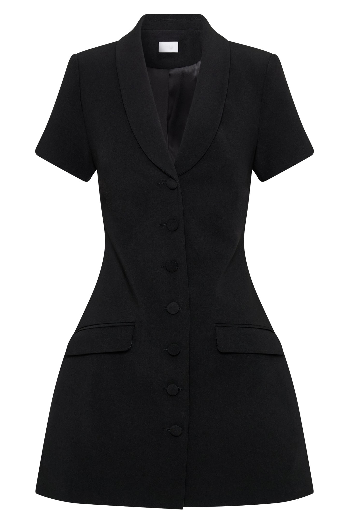 The Collared Suiting Mini Dress is a chic and sophisticated addition to your wardrobe. Featuring a V neckline with a collar and lapel, it exudes timeless elegance with a hint of modern flair. The functional center front button closure adds a touch of polish, while the non-functional front pockets offer a stylish detail. With short sleeves, it's perfect for warm-weather wear, and the mini length adds a flirty touch to the ensemble. Whether dressed up with heels for a formal occasion or styled casually with flats for a daytime look, the Mini Dress is sure to make a statement with its effortless charm and versatile style.