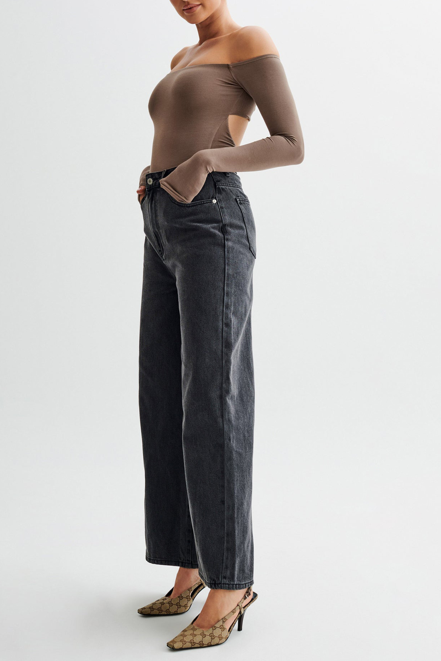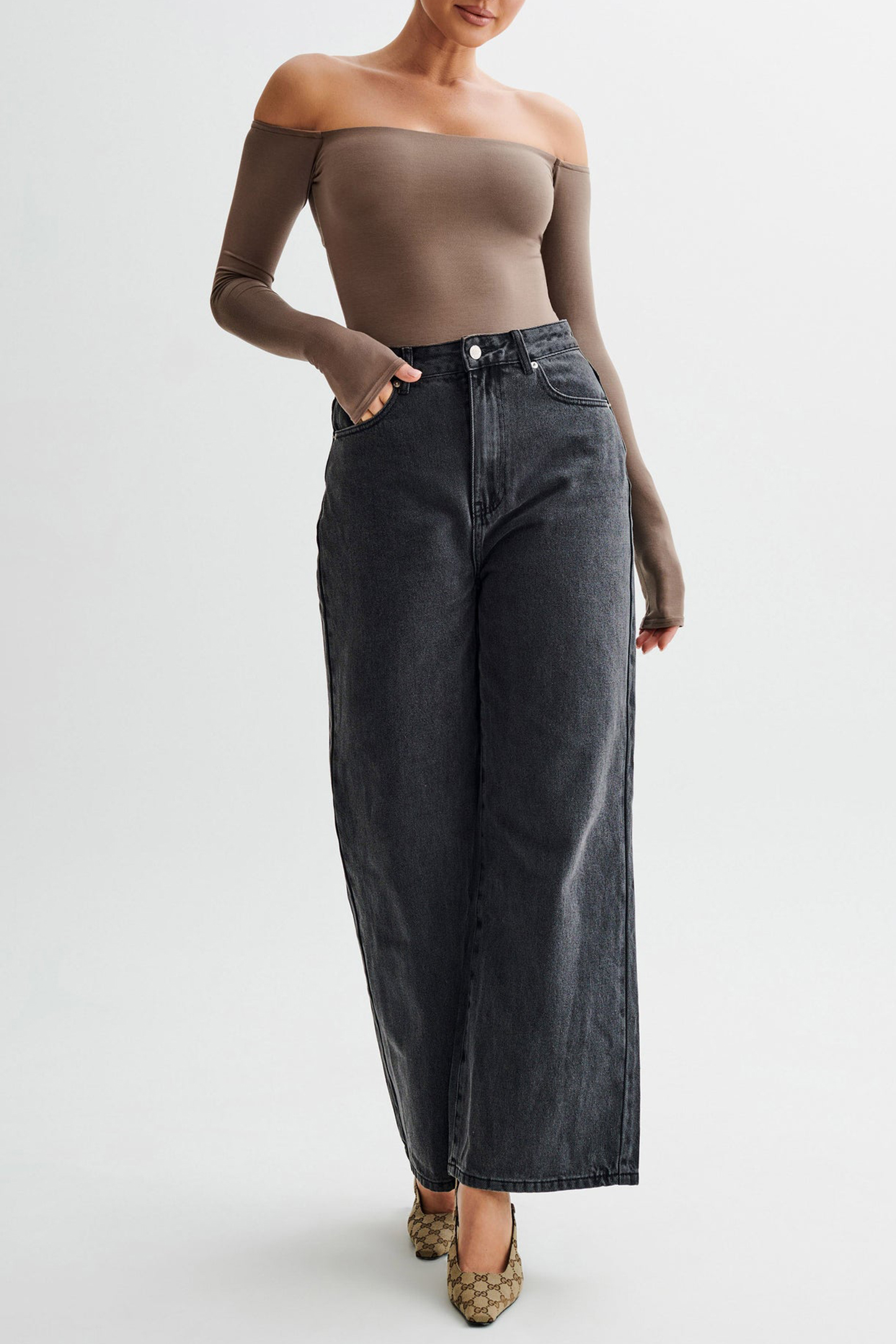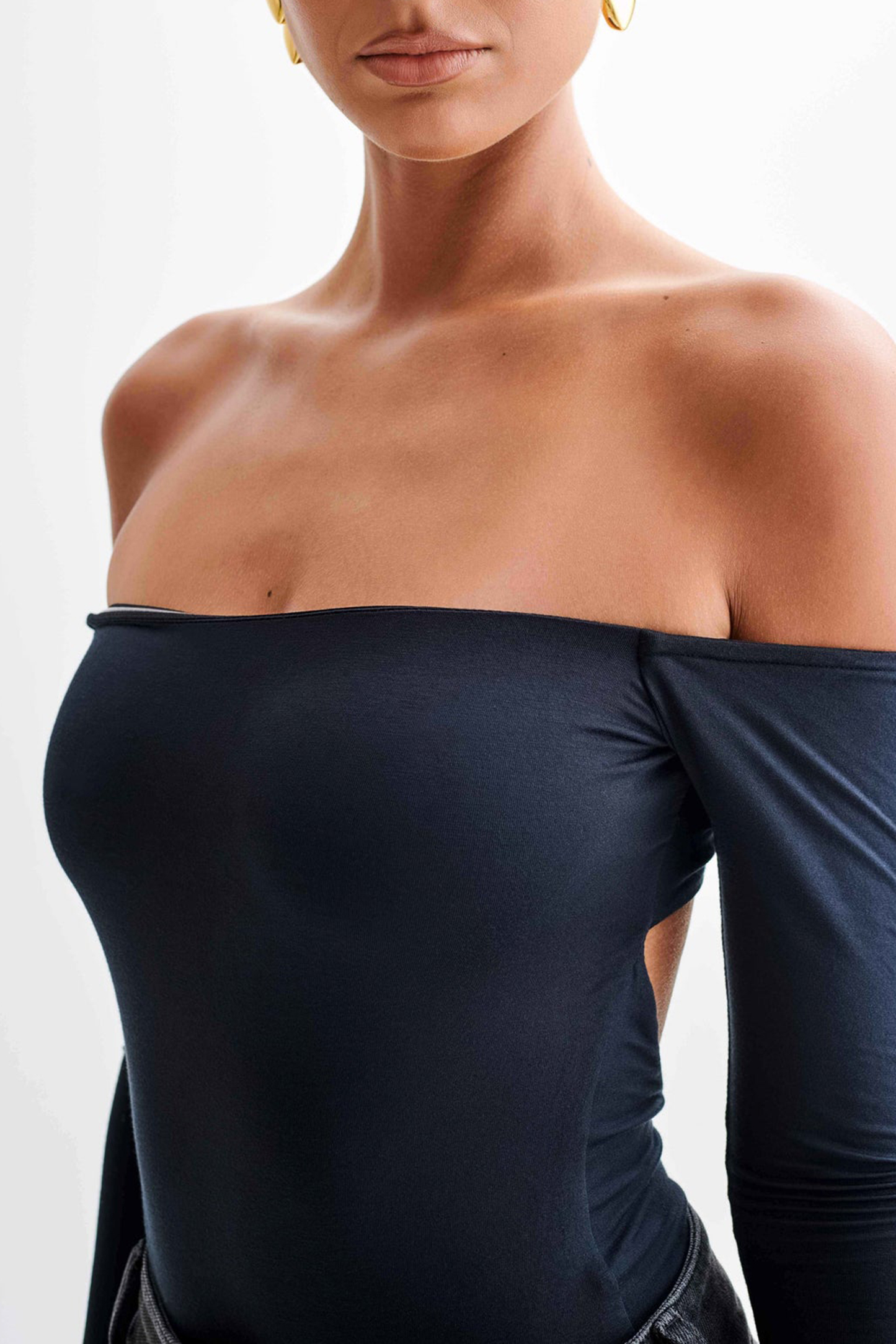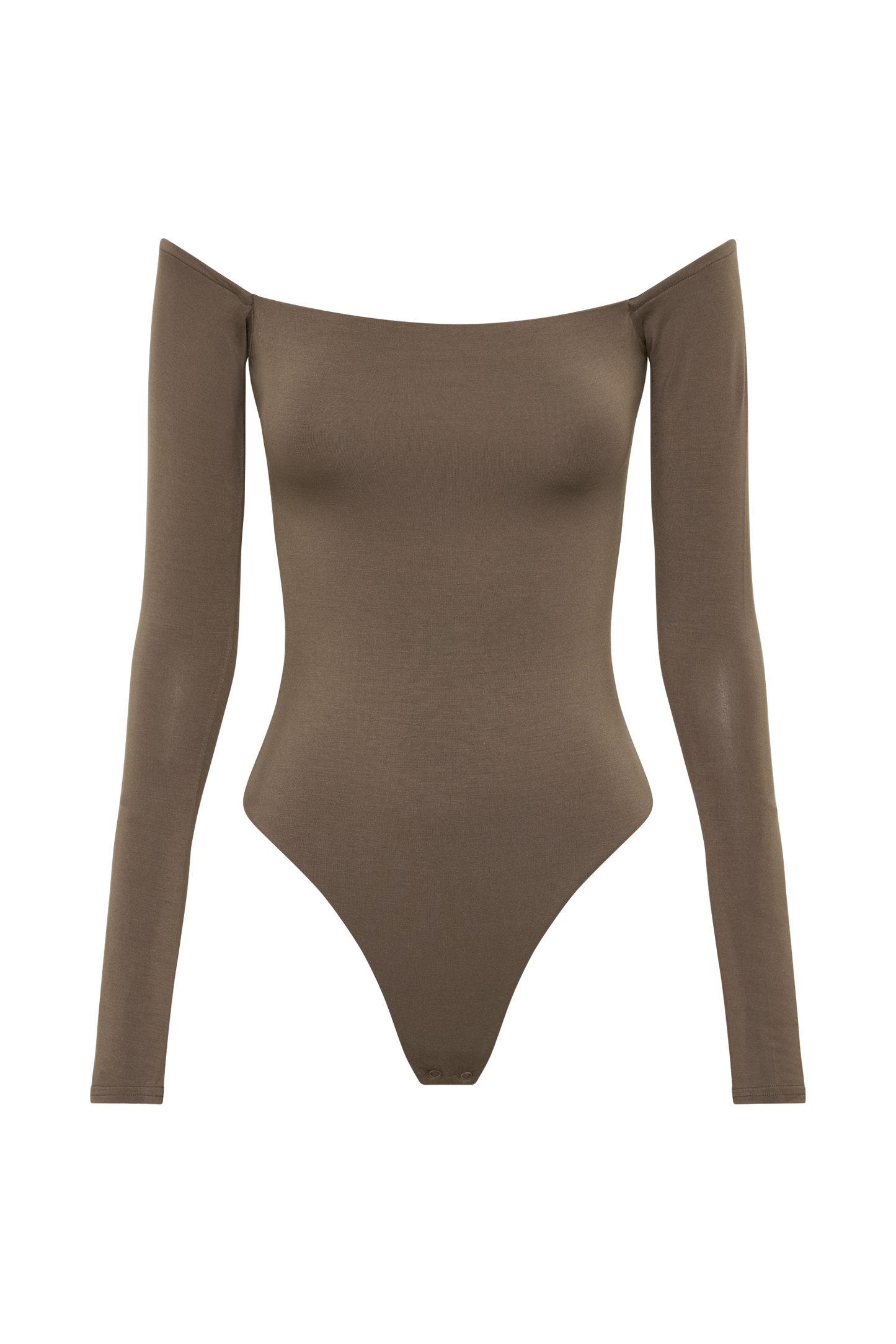 The Off Shoulder Modal Long Sleeve Bodysuit is the epitome of chic sophistication and modern allure. With its off-the-shoulder design, it exudes effortless elegance while highlighting your neckline. The underbust panel seam adds structure and enhances the silhouette, while the long flared sleeves bring a touch of drama to your ensemble. The twist back detail with an open back adds a hint of allure, ensuring you turn heads wherever you go. Crafted as a bodysuit with functional snaps at the crotch, it offers ease of wear and a seamless finish. With thong coverage for a smooth look and lined body for comfort, the Bodysuit is a versatile wardrobe essential that transitions seamlessly from day to night with undeniable style.