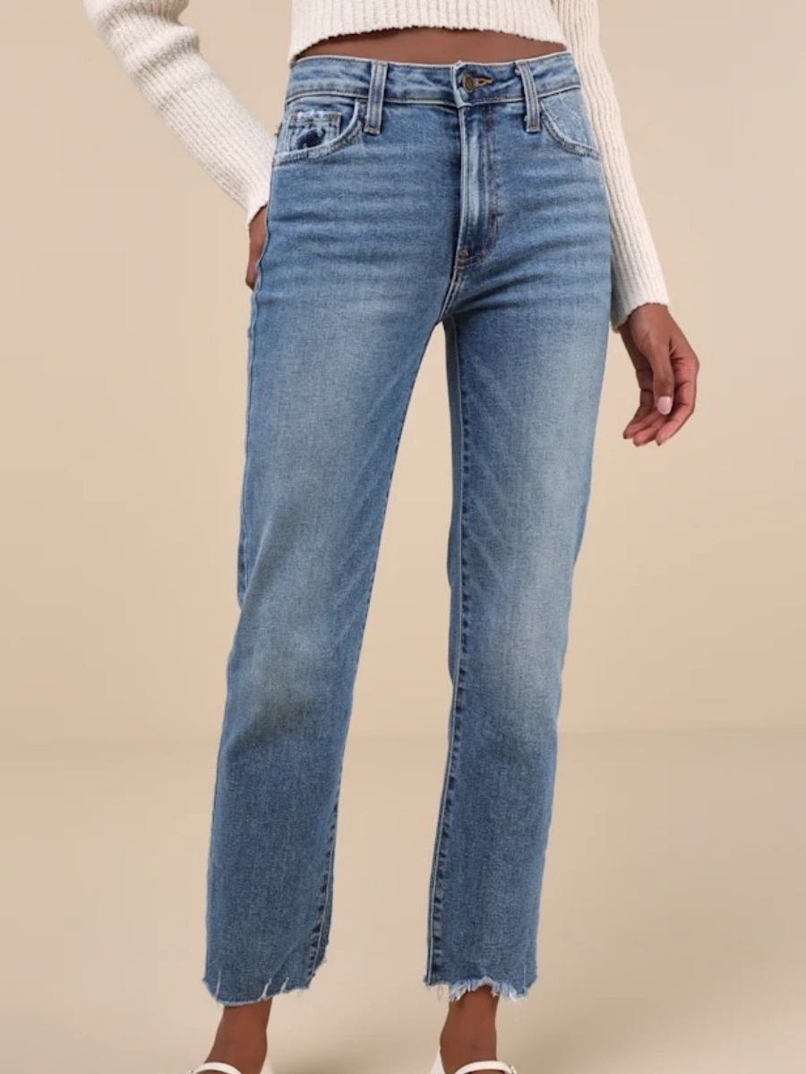 Frayed Hem Straight Jeans 1103048