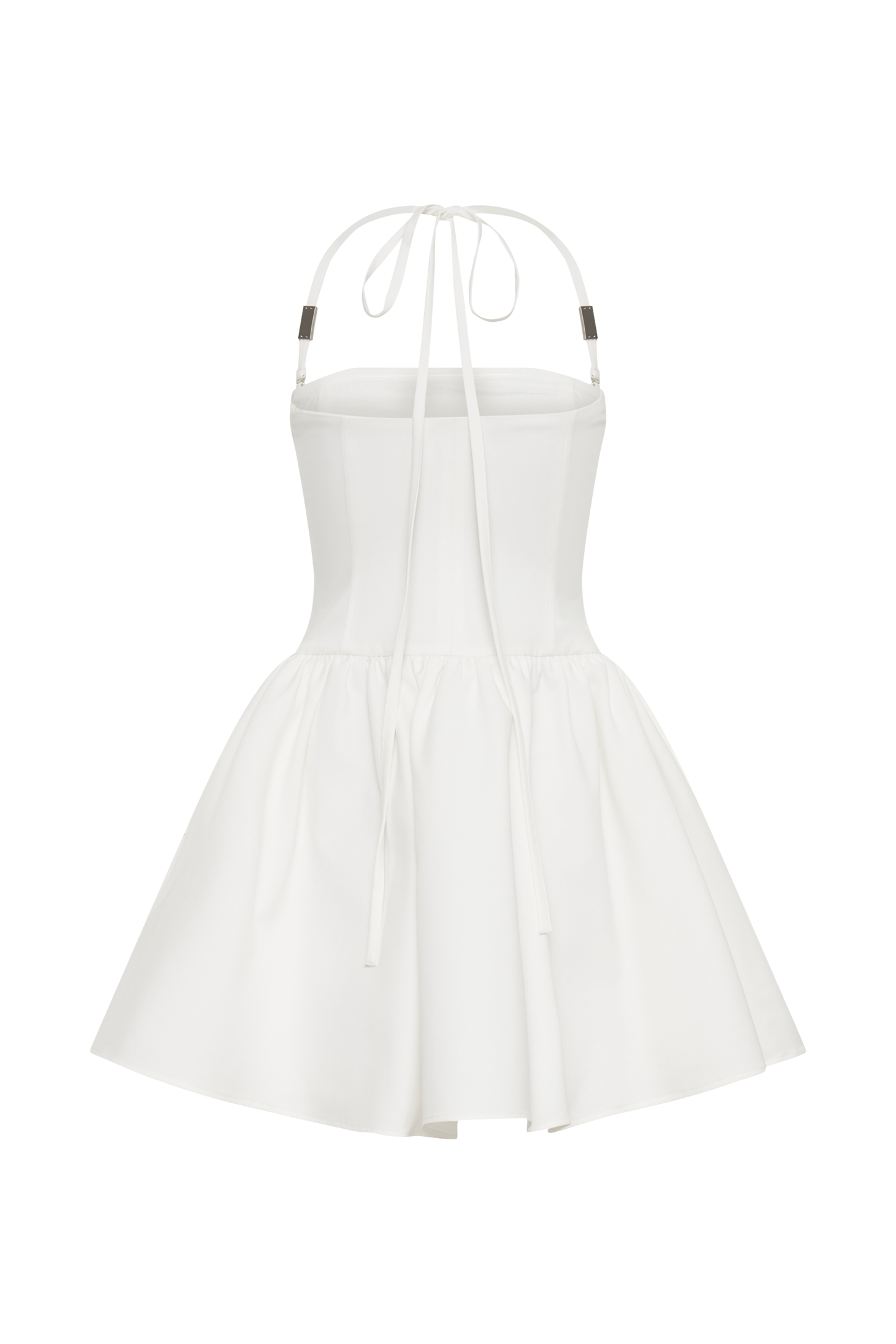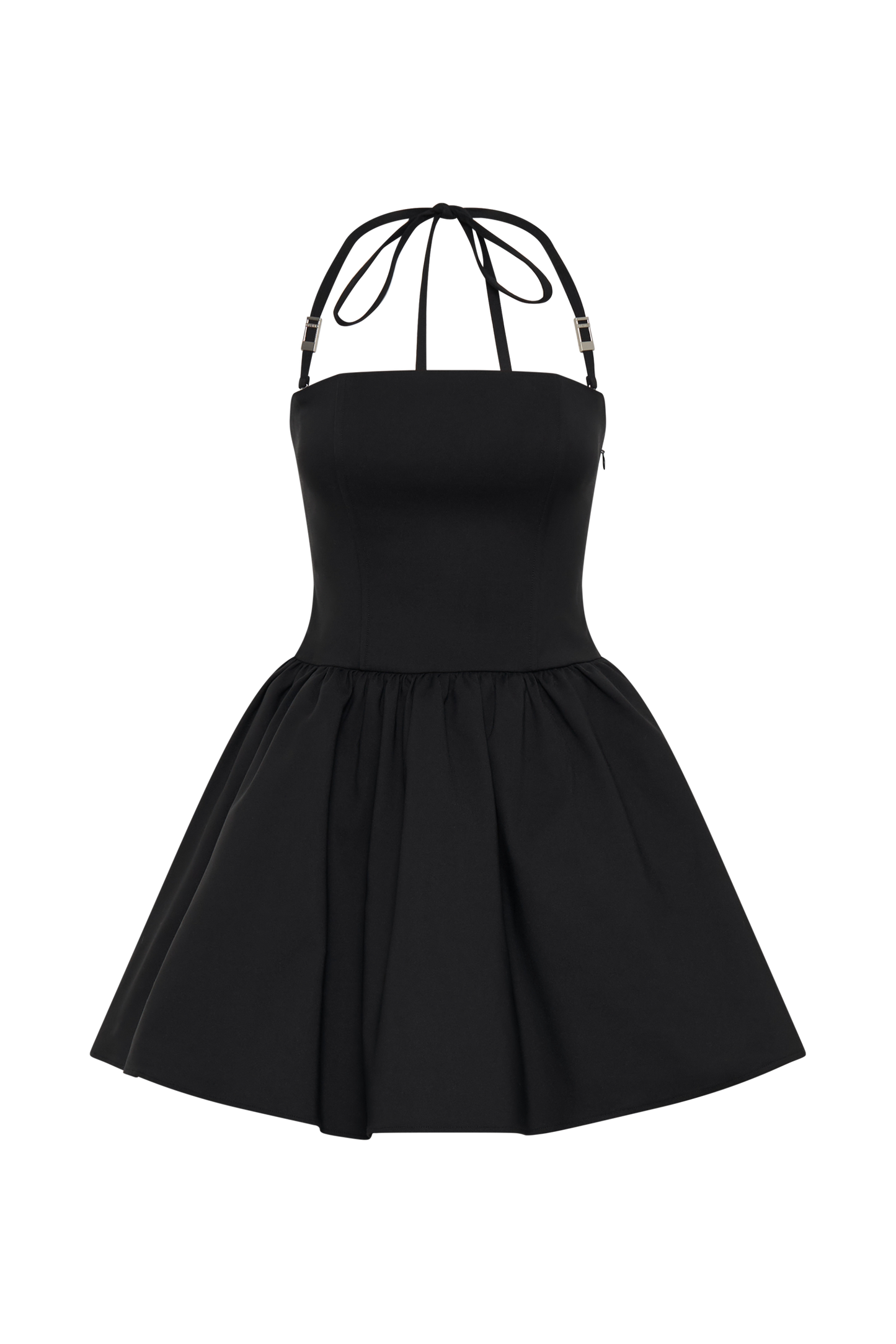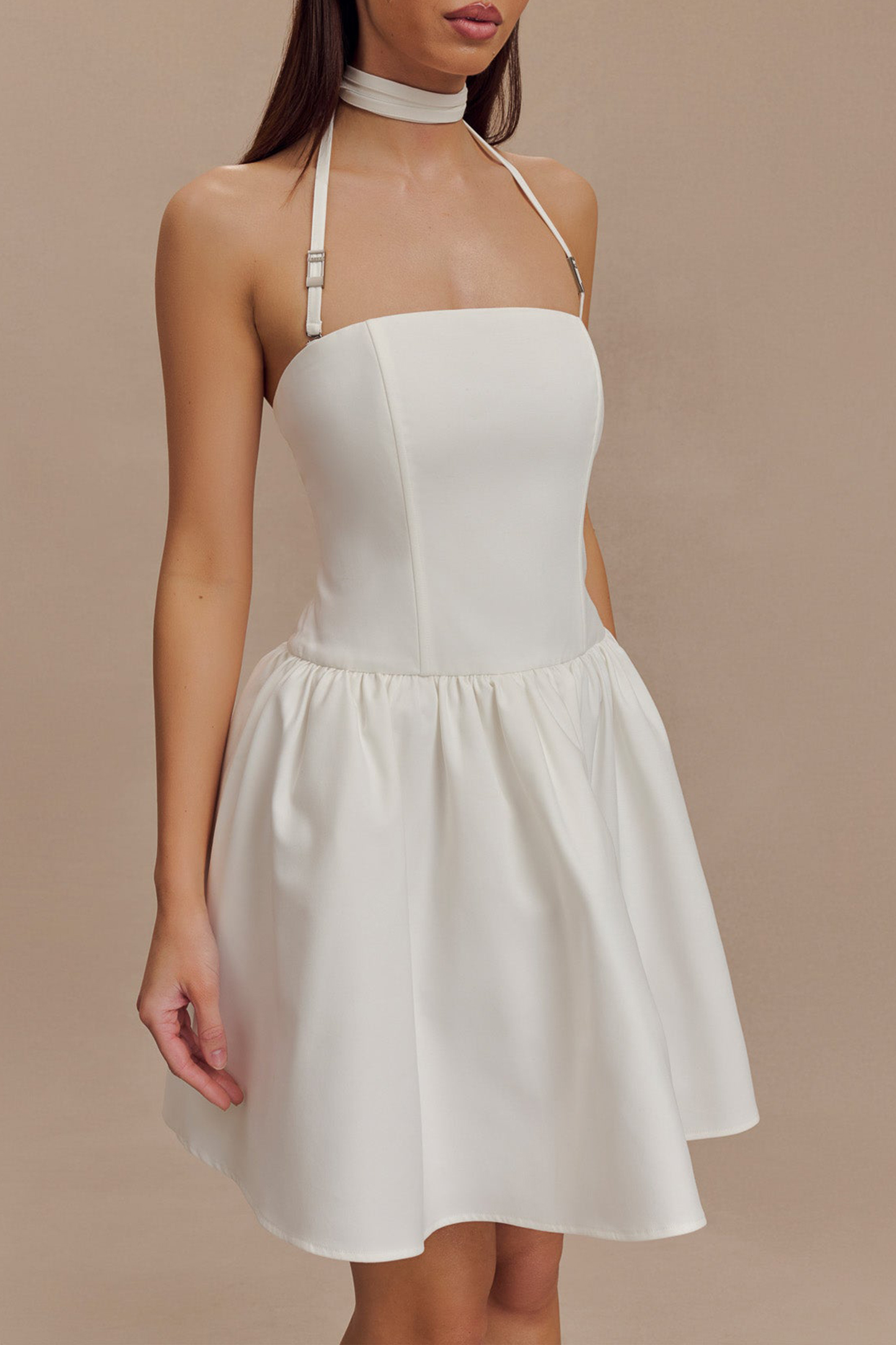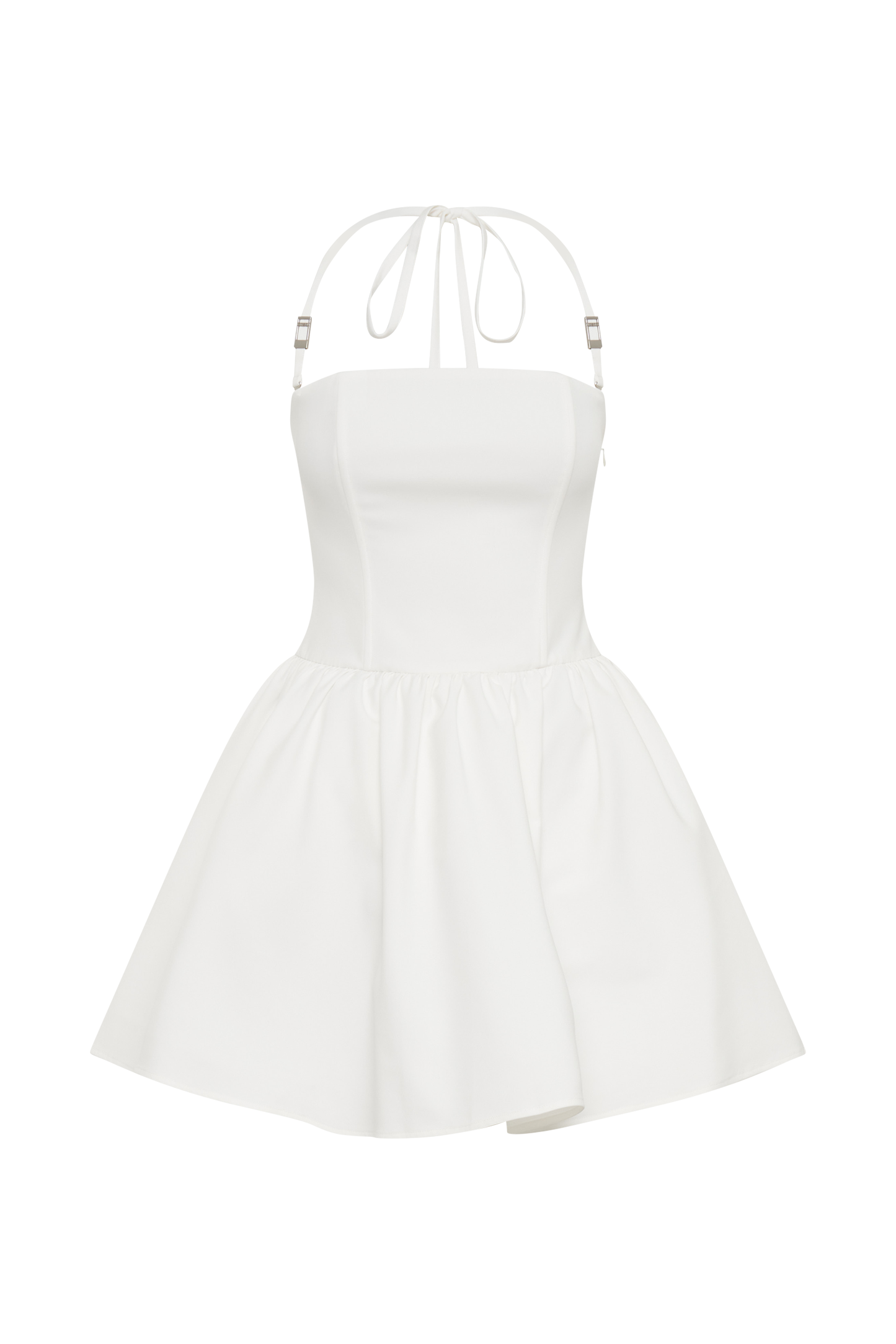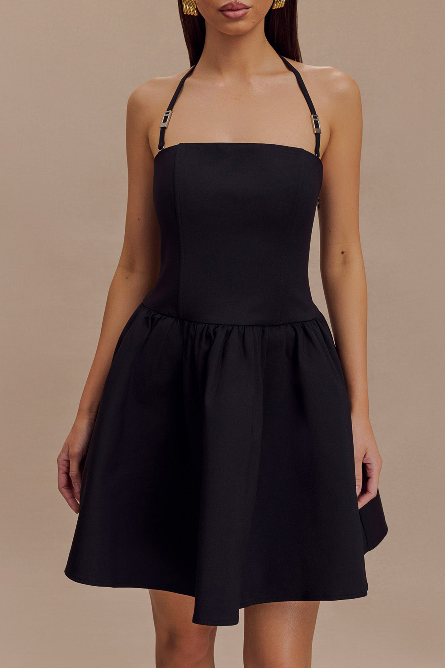 The Halter Mini Dress is a stunning embodiment of playful sophistication and effortless glamour. With its round neckline and fitted bodice, this dress accentuates the figure beautifully, while the full gathered skirt adds a touch of playful volume. The buckle detail on the straps and wrap-around adjustable straps offer a customizable fit and a chic, contemporary edge. The mini length showcases a youthful charm, and the lined construction ensures a smooth, comfortable fit. Finished with a convenient side zip, the Dress is perfect for making a memorable entrance at any special occasion.