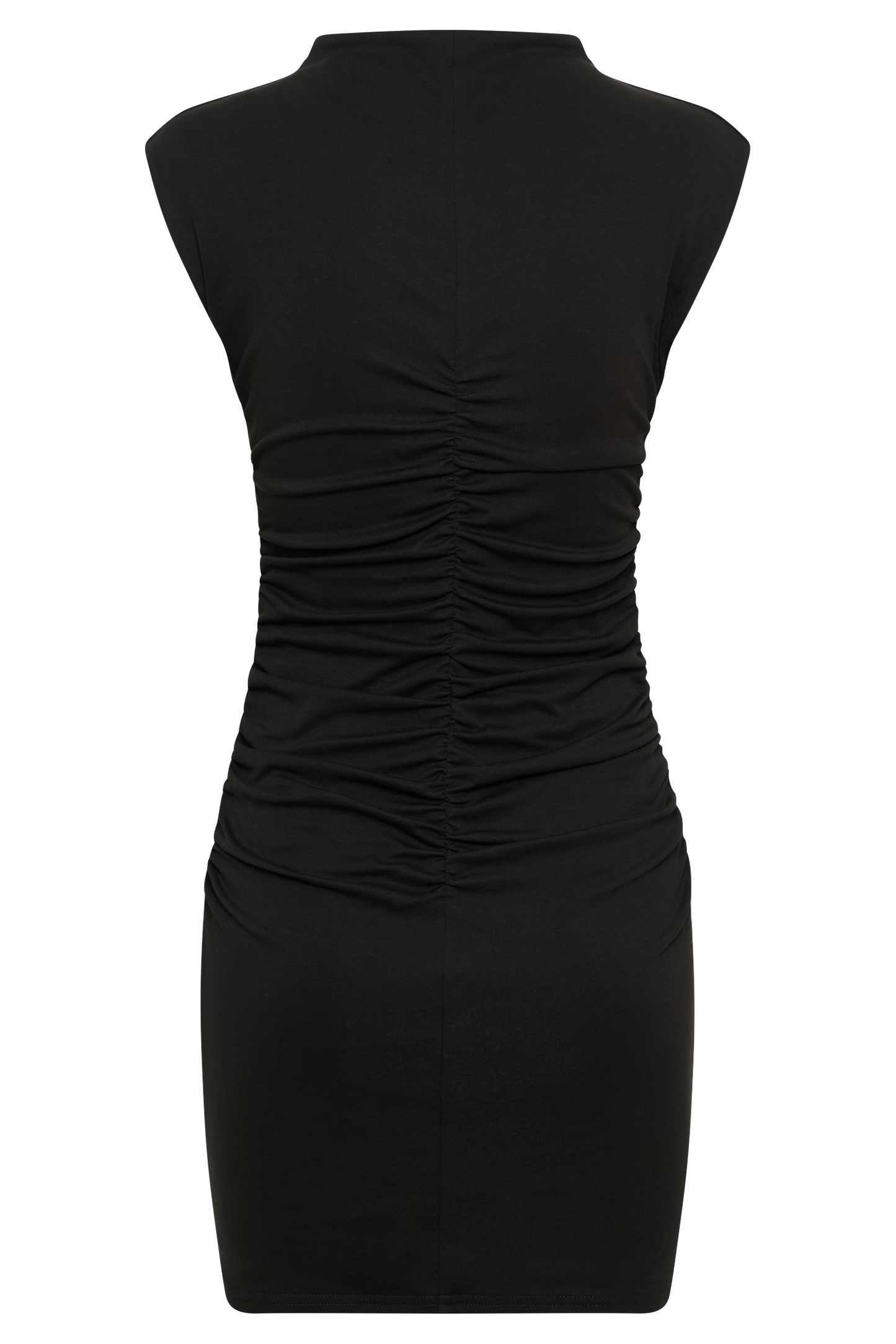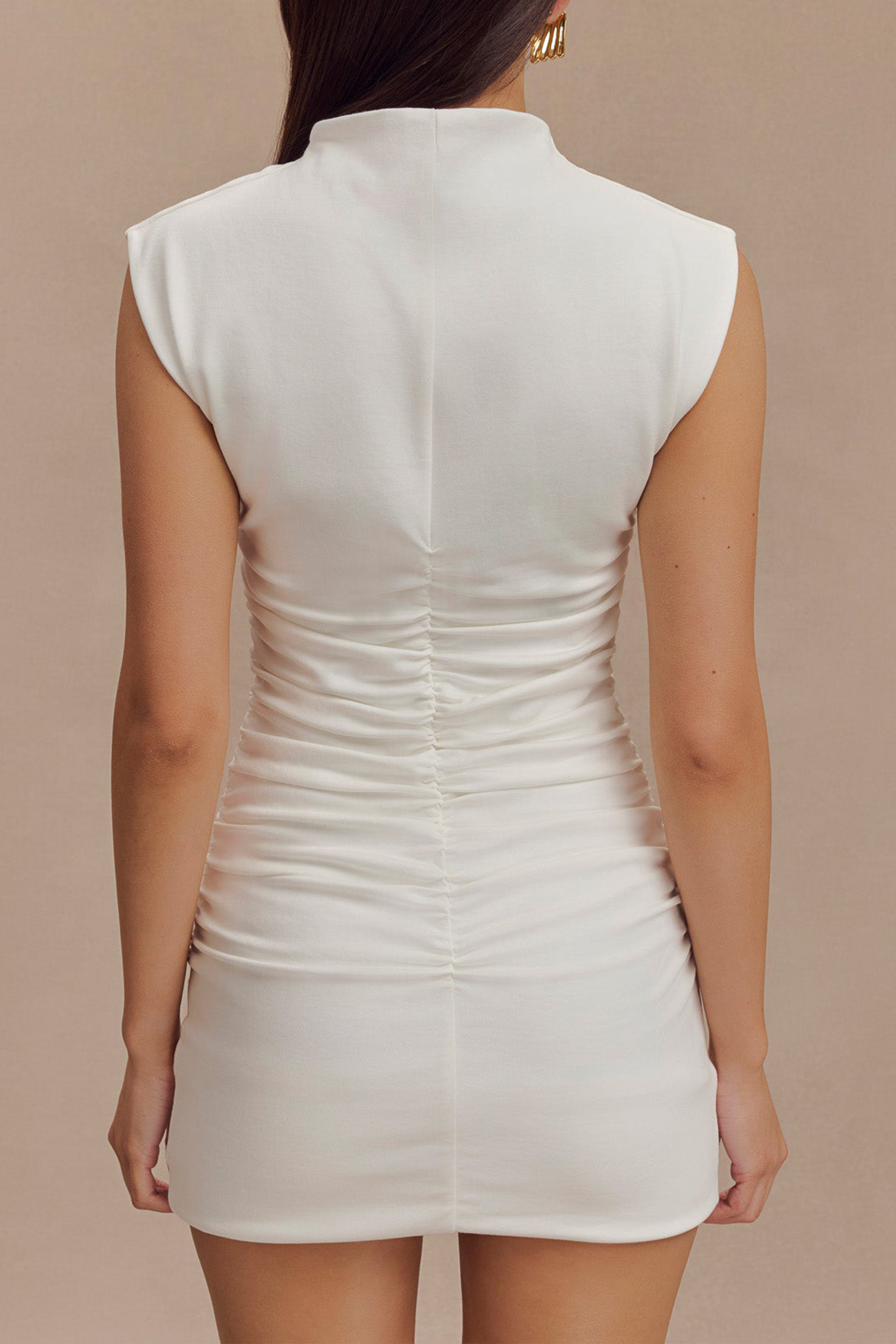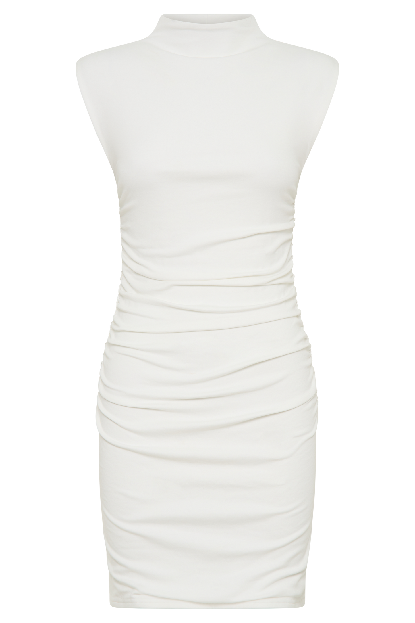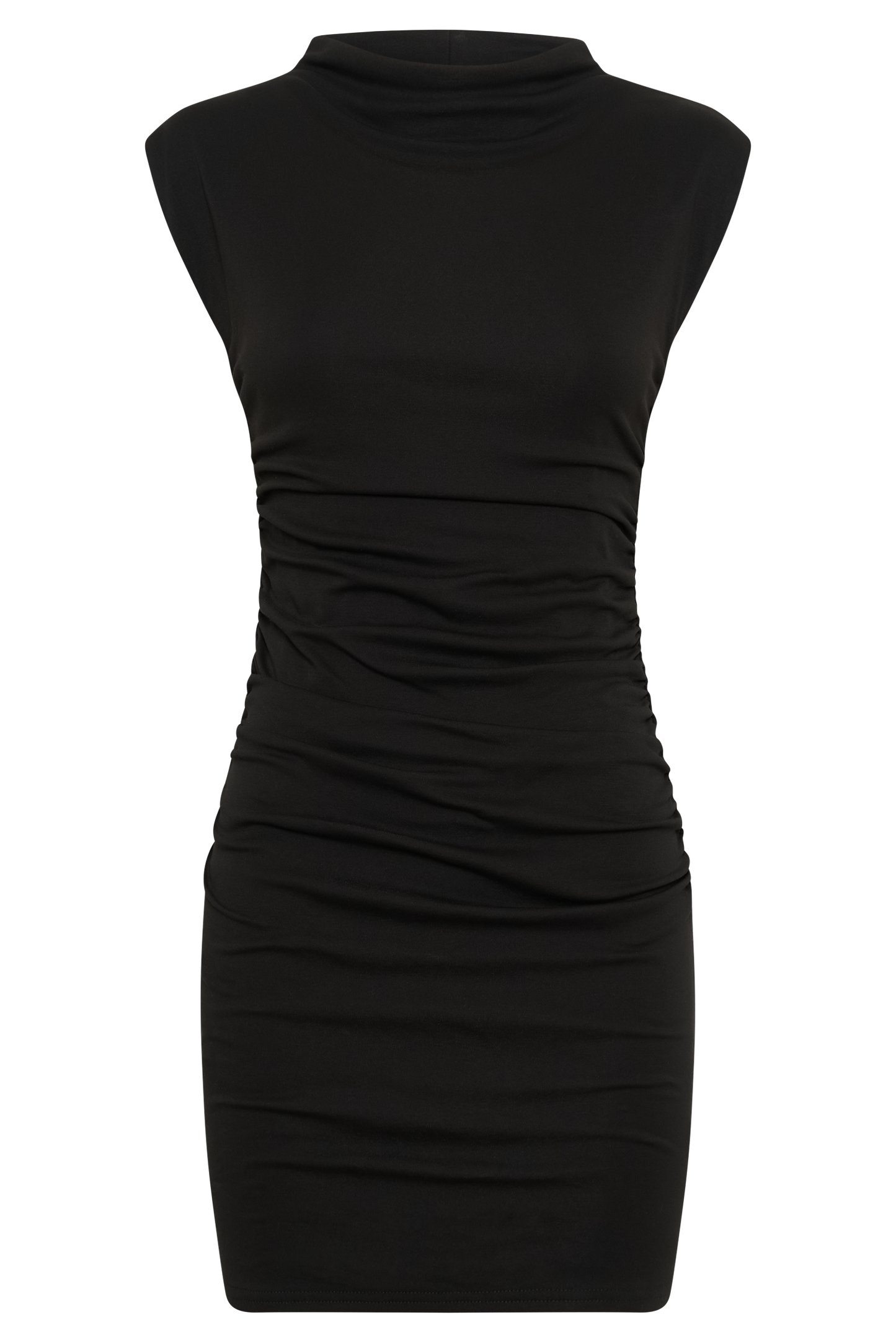 The High Neck Sleeveless Mini Dress is a striking combination of elegance and contemporary design. Featuring a high neckline and sleeveless cut, this dress offers a sleek, sophisticated look. The ruched side details add texture and visual interest, creating a flattering silhouette. Lined for comfort and structure, and crafted from soft jersey fabrication, the Dress provides a smooth and comfortable fit. With its mini length, it’s a chic and versatile choice for various occasions, effortlessly blending style with ease.