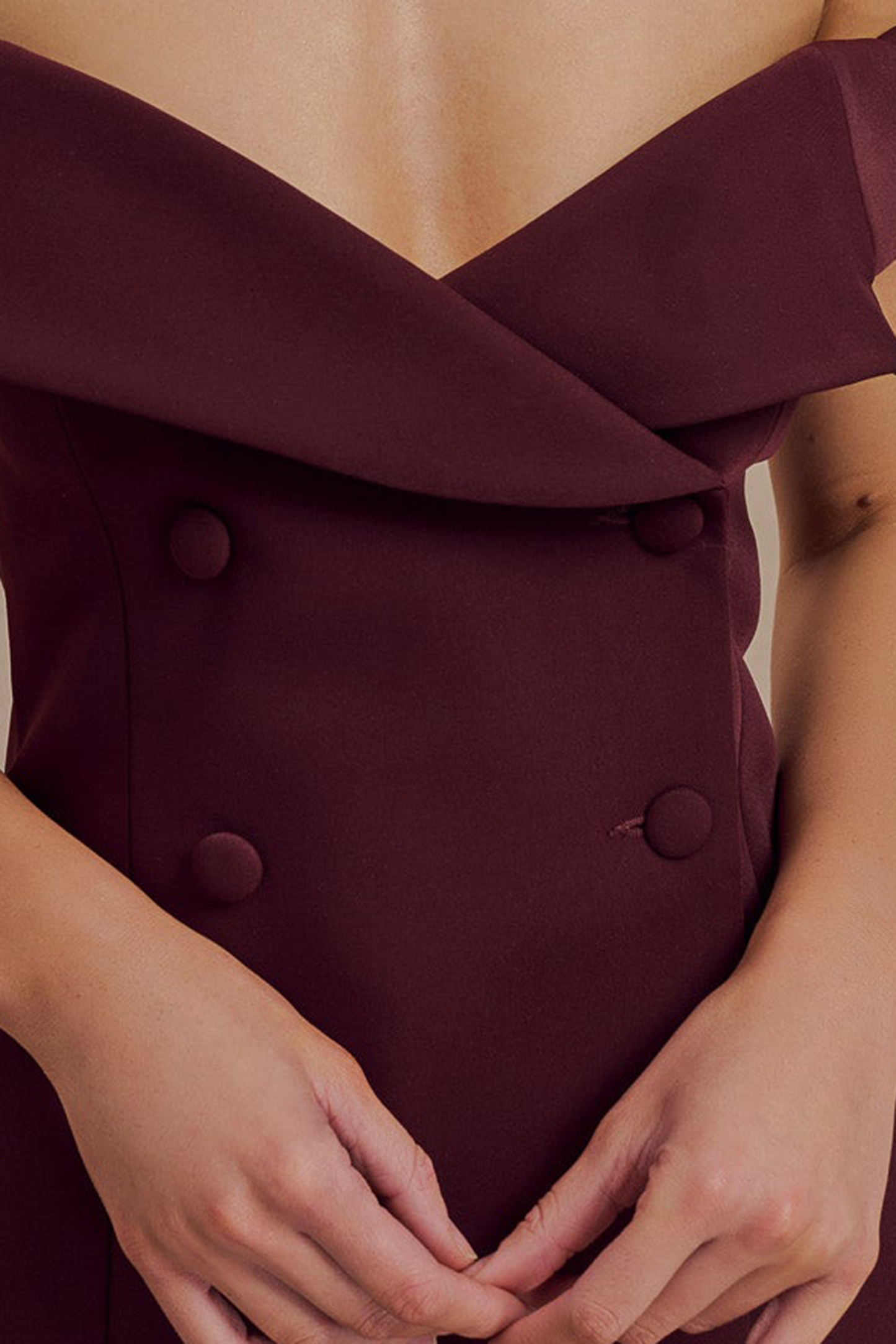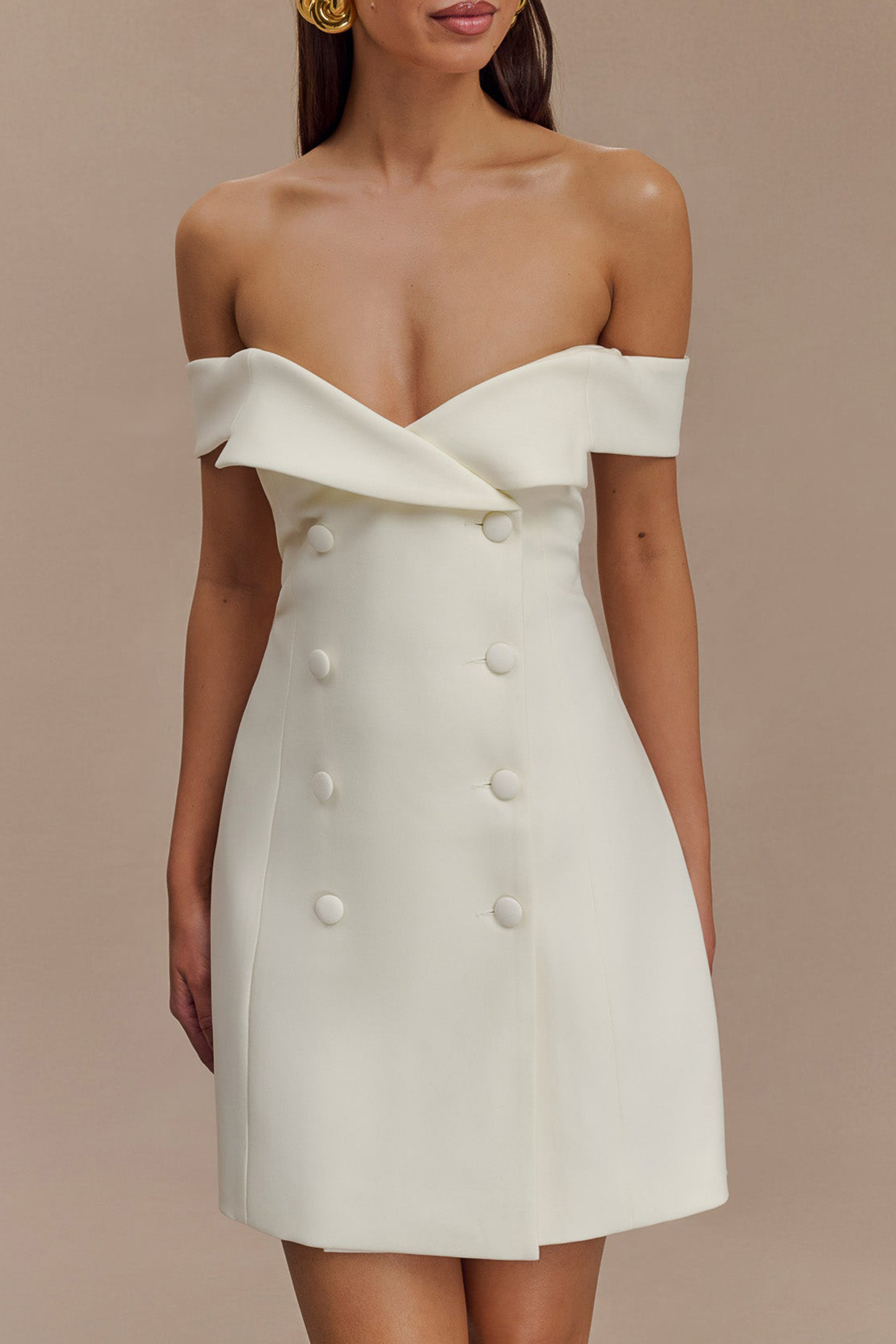 The Off Shoulder Suiting Mini Dress is a captivating blend of sophistication and modern style. Featuring a Bardot neckline with a chic off-shoulder design and lapel detail, this mini dress exudes elegance and confidence. The functional front flap closure adds a touch of classic tailoring, while the fit-and-flare shape creates a flattering silhouette that enhances your figure. With its mini length, the Dress is perfect for making a statement at any event or evening out, effortlessly combining formal elegance with contemporary flair.