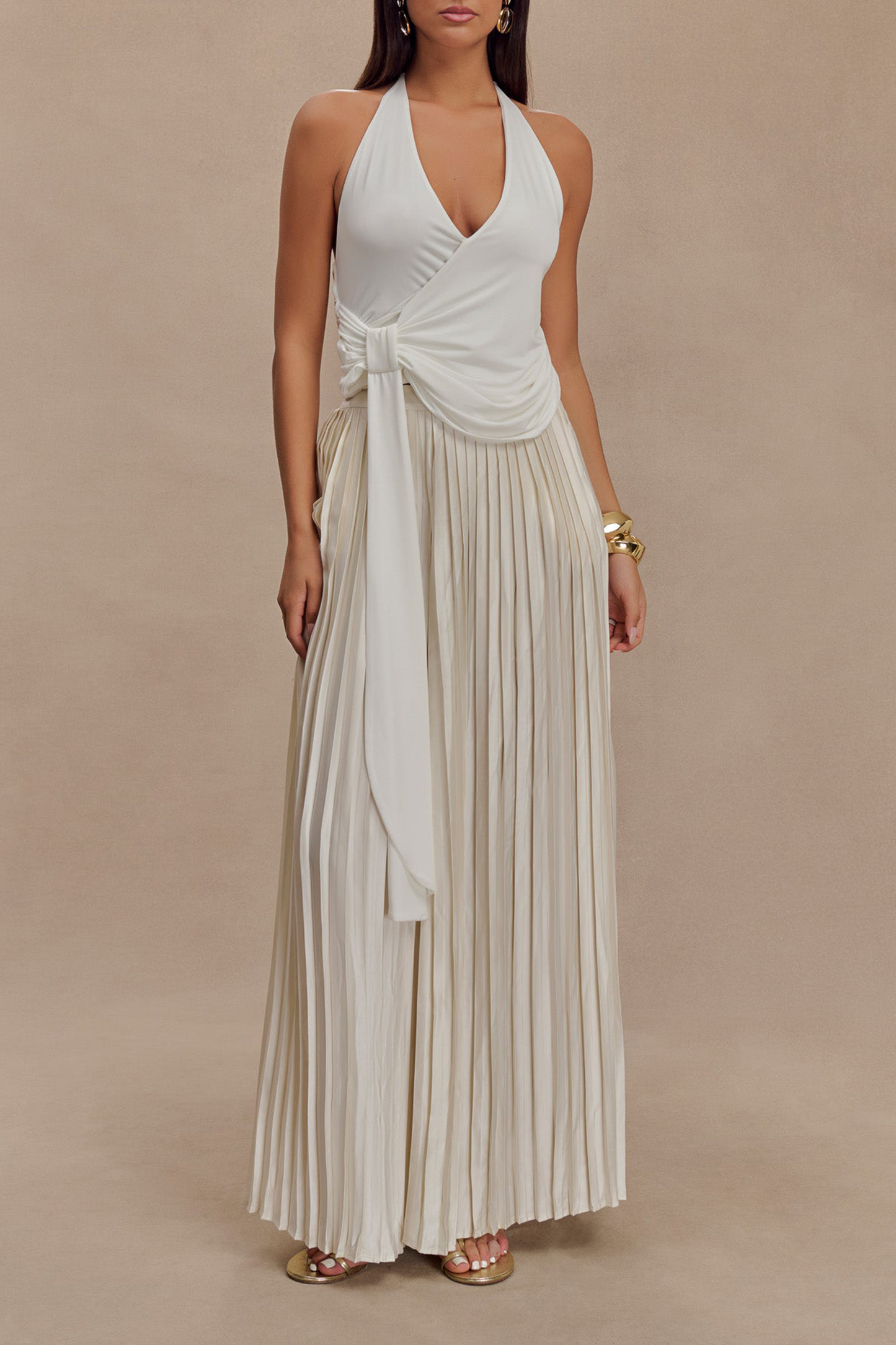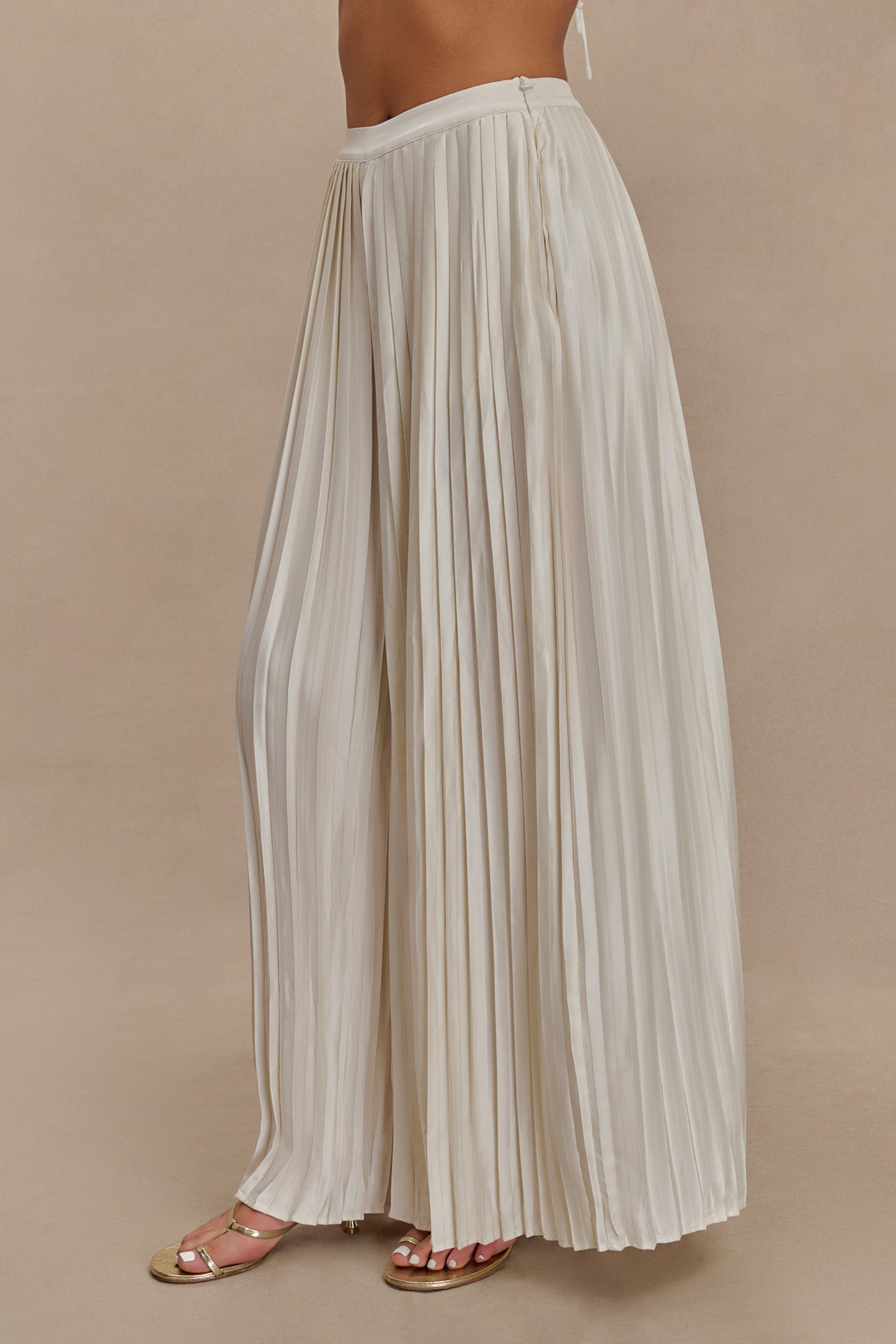 The Plisse Wide Leg Pants effortlessly combine elegance and comfort, making them a standout piece in any wardrobe. Featuring a high-waisted design, these pants offer a flattering silhouette and a sleek, polished look. The wide-leg cut provides a relaxed fit that drapes beautifully, while the pleated fabrication adds texture and sophistication. A side zip closure ensures a smooth, tailored fit, making the Pants perfect for both professional settings and stylish casual outings. With their versatile design, they pair seamlessly with a variety of tops for a chic and refined ensemble.