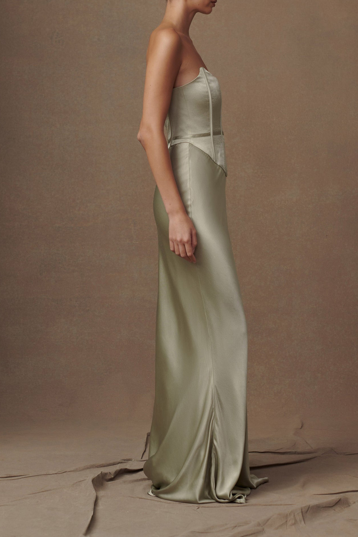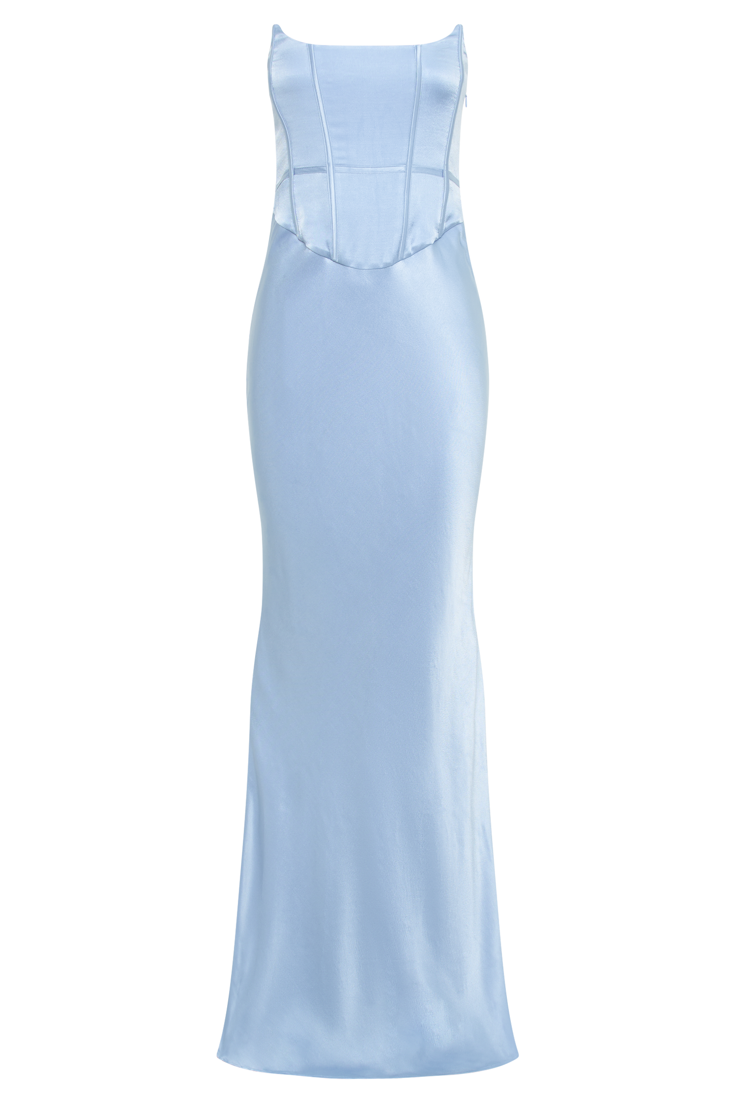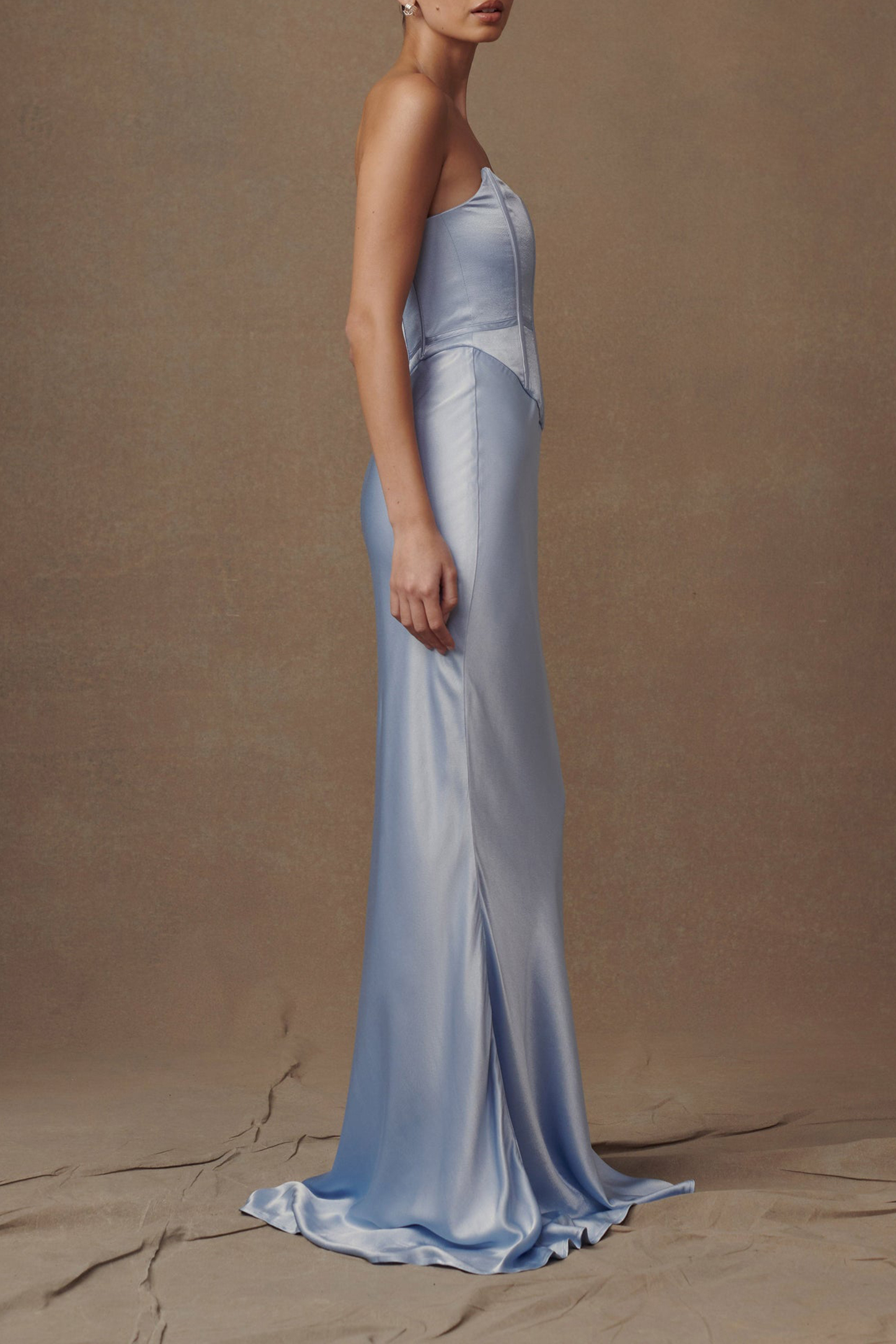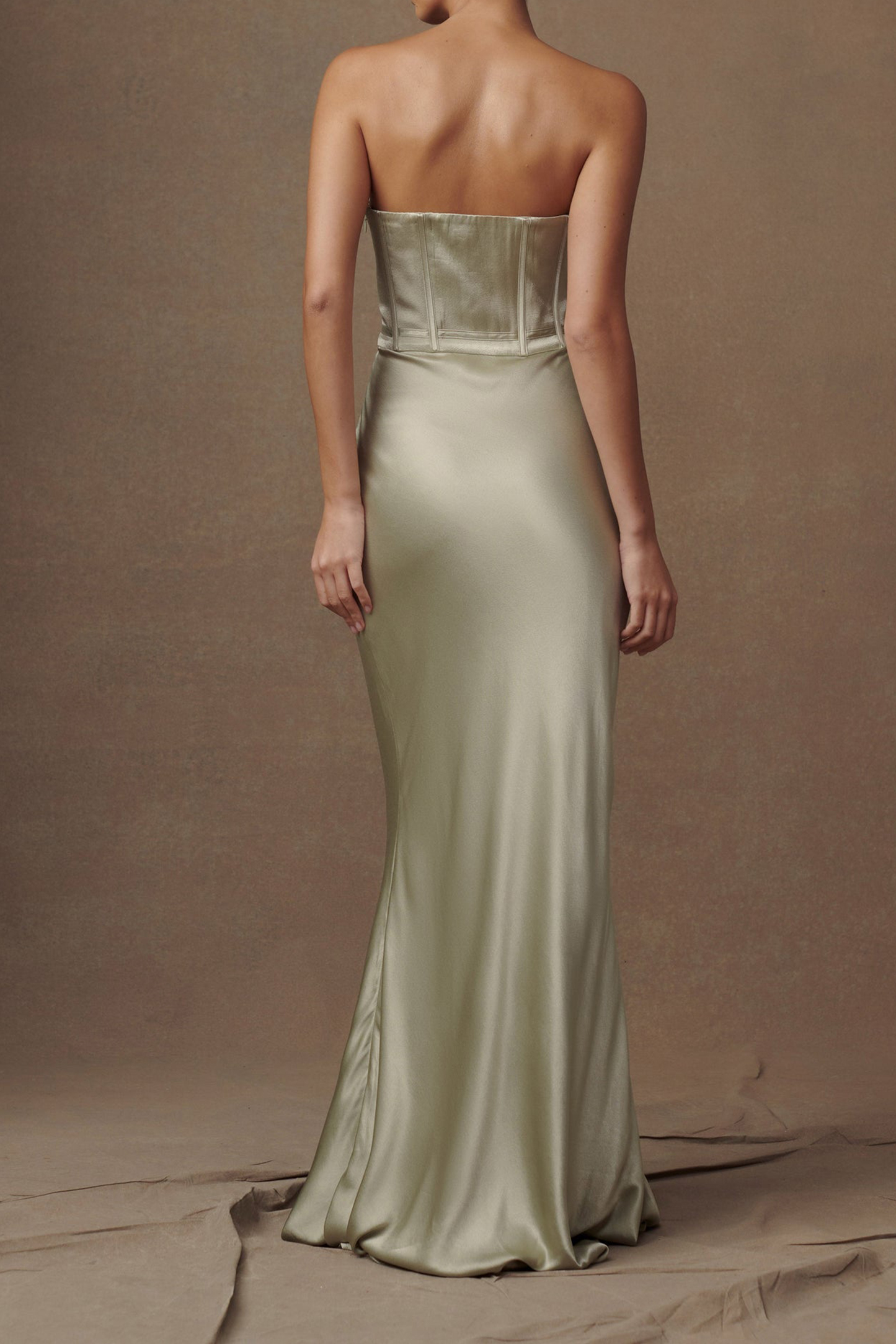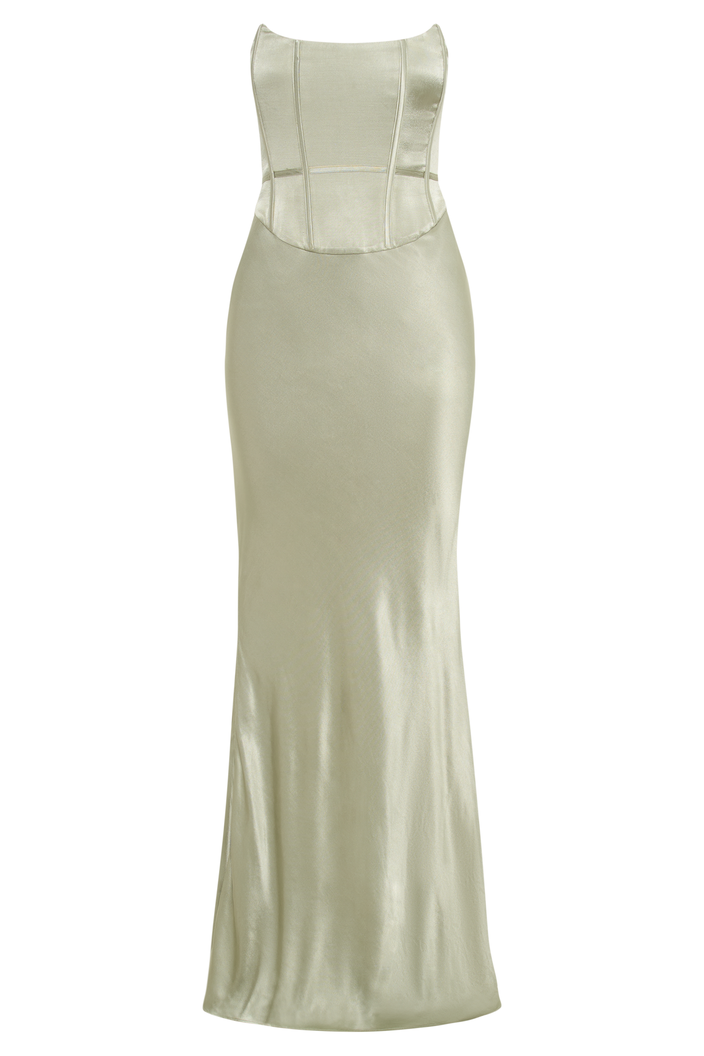 Elevate your evening look with the Satin Strapless Maxi Dress, a captivating blend of sophistication and allure. Featuring a strapless silhouette and a structured, boned bodice, this dress ensures a flattering fit with a touch of vintage-inspired charm. The corset detailed bodice adds a unique flair, while the bodycon style accentuates your curves beautifully. Crafted from luxurious satin fabrication, it exudes elegance and glamour. With its flowing maxi length, the dress is your go-to choice for making a statement at any special occasion.