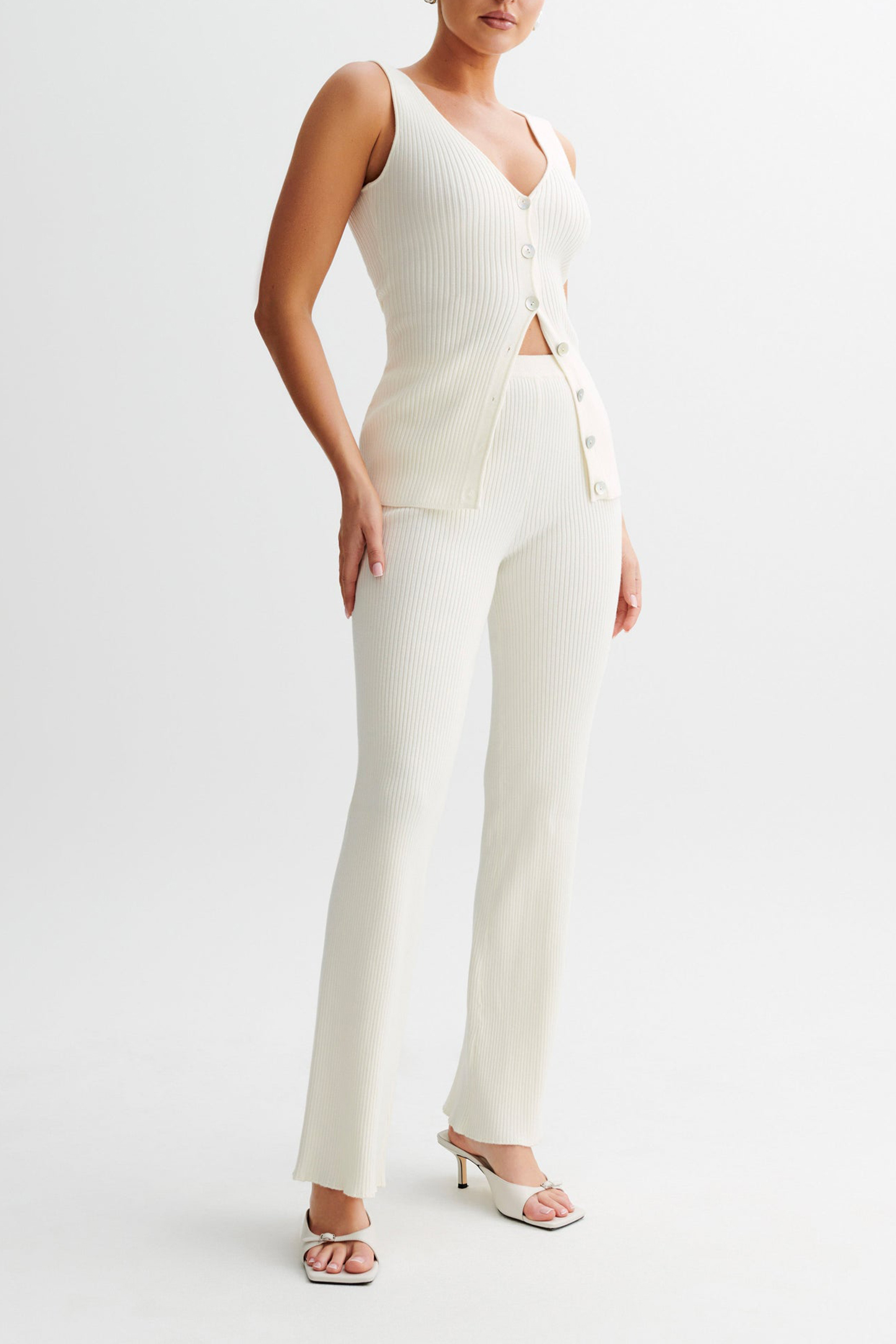 The Knit Trousers are the epitome of comfort and style. These high-waisted trousers feature an elastic waist for a snug and flexible fit, ensuring all-day comfort. The straight leg design offers a classic and flattering silhouette, making them a versatile addition to any wardrobe. Unlined for a lightweight feel, these knit trousers are perfect for both casual and dressier occasions, effortlessly combining ease and elegance. Pair with the Knit Longline Vest to complete the look.