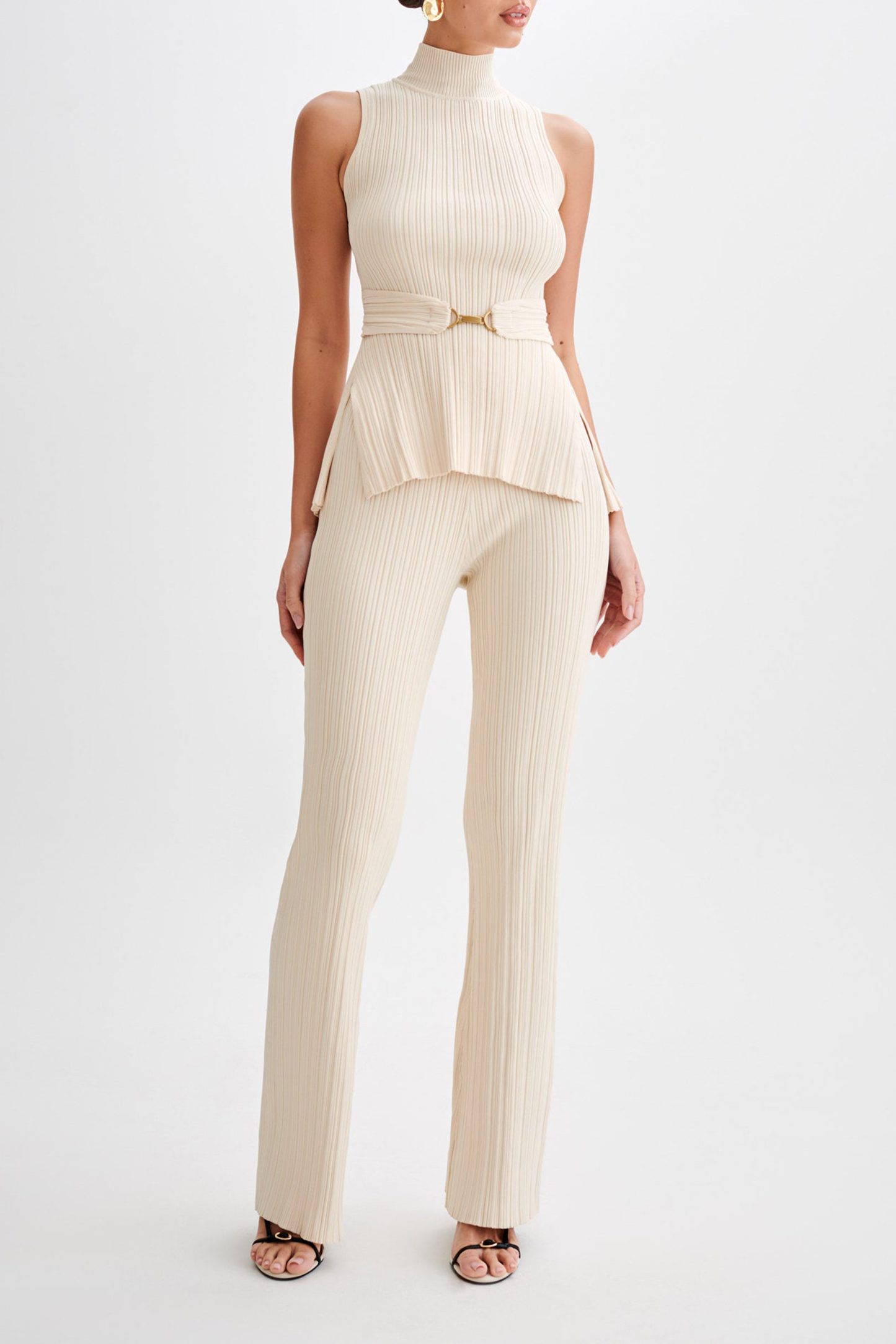 Discover the Straight Leg Rib Knit Pant, designed for both style and comfort. Featuring an elastic waist, these pants offer a snug yet flexible fit for all-day wear. With a bodycon silhouette, they accentuate your curves effortlessly. The straight leg shape adds a timeless touch, perfect for pairing with various tops. Crafted from rib knit fabric, these pants blend style with versatility, making them a wardrobe essential. Whether lounging at home or out for the evening, the Straight Leg Rib Knit Pant ensures you stay stylish and comfortable. Pair with the Tanya Cut Out High Neck Top for a matching look.